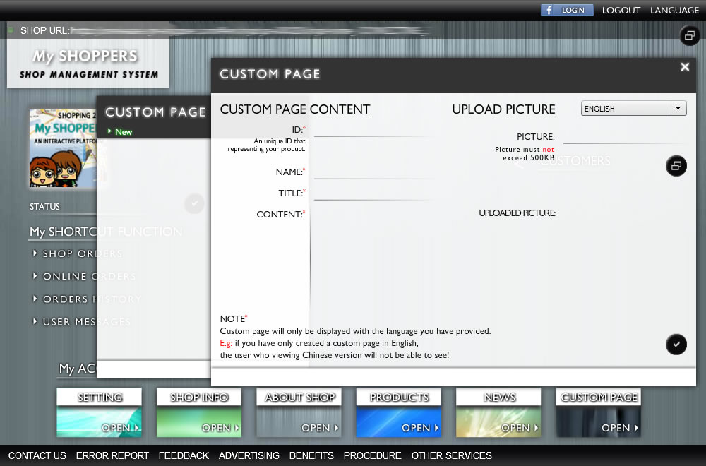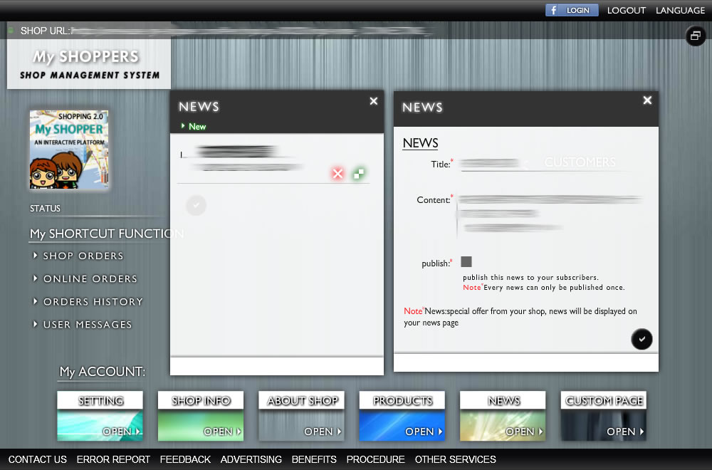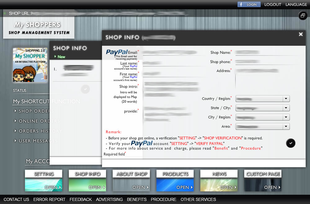 HOW : SYSTEM -> My ACCOUNT -> ABOUT SHOP